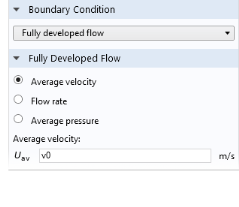 Locate the Fully Developed Flow section. In the Uav text field, type v0 (which you defined as a Global Parameter).