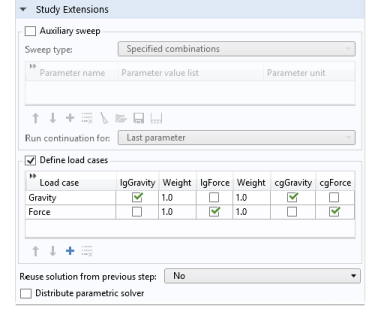 For load groups, optionally change the weight from its default value of 1.0 in the corresponding Weight column (the Weight column to the right of the load group that it affects). Use a positive value other than 1 to increase or decrease the magnitude of the load; a negative value also reverses the load’s direction.