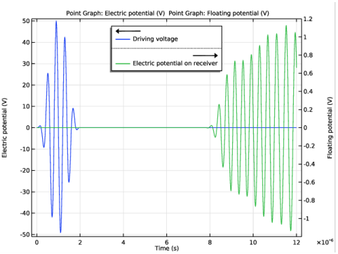 Click Replace Expression in the upper-right corner of the y-axis data section. From the menu, choose Component 2>Electrostatics 2>Floating potentials>es2.fp1.V - Floating potential - V.