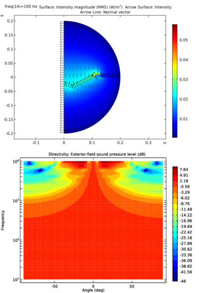 In the Model Builder window, expand the Exterior-Field Pressure (acpr) node, then click Radiation Pattern 1.