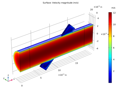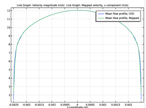 Click Replace Expression in the upper-right corner of the y-axis data section. From the menu, choose Component 1>Background Fluid Flow Coupling 1>Mapped velocity - m/s>bffc1.u_mapx - Mapped velocity, x component.