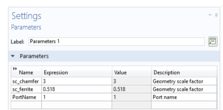 The geometry is set up using a parameterized approach. This allows you to match the input impedance to that of the connecting waveguide sections by variation of two geometric design parameters. These are dimensionless numbers used to scale selected geometric building blocks.