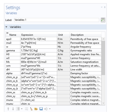 The lossy ferrite material model is set up by referring to global variables. For convenience the definitions are stored in an external text file that is imported into the model. The external text file also contains comments.