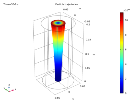 In the Model Builder window, expand the Solution 1 (sol1) node, then click Compile Equations: Bidirectionally Coupled Particle Tracing (2).