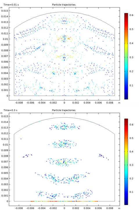 The particle position at t = 0.01s is reproduced in Figure 4 (top).