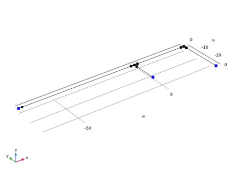 Pipe acoustics is used to model the propagation and response of acoustic signals in the long pipe segments using a 1D model. This interface is only valid for the analysis of plane wave modes. The 3D structures are modeled using pressure acoustics. To ensure correct coupling to the 1D model, the Acoustics-Pipe Acoustics Connection multiphysics coupling is used. The coupling requires a straight pipe segment connected to the 3D structure and it is only valid when the background fluid velocity speed is zero.