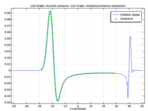 In the Model Builder window, under Component 1 (comp1)>Convected Wave Equation, Time Explicit (cwe) click Convected Wave Equation Model 1.