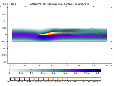 In the Model Builder window, under Component 1 (comp1)>Heat Transfer in Solids and Fluids (ht) click Fluid 1.