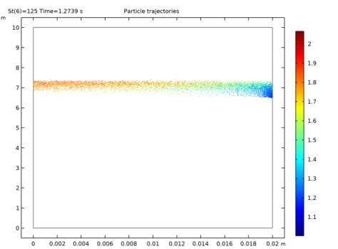 In the Model Builder window, under Component 1 (comp1)>Particle Tracing for Fluid Flow (fpt) click Particle Properties 1.