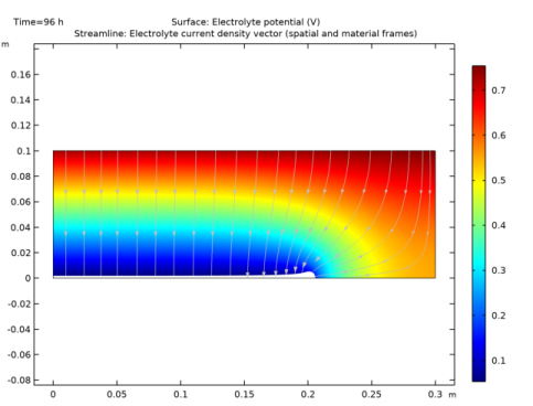 In the Model Builder window, under Component 1 (comp1)>Secondary Current Distribution (cd) click Electrolyte 1.