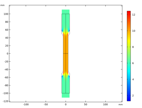 In the Settings window for Surface, click Replace Expression in the upper-right corner of the Expression section. From the menu, choose Component 1 (comp1)>Solid Mechanics>Stress (Gauss points)>Second Piola-Kirchhoff stress, Gauss point evaluation (material and geometry frames) - N/m²>solid.SGpY - Second Piola-Kirchhoff stress, Gauss point evaluation, Y component.