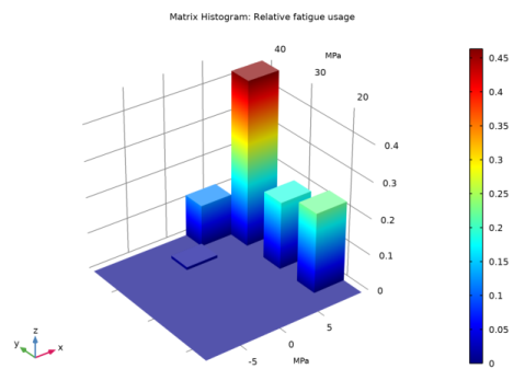 In the Model Builder window, expand the Fatigue Usage Distribution (ftg) node, then click Matrix Histogram 1.