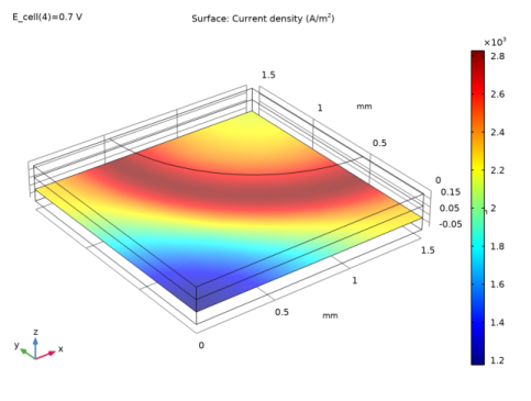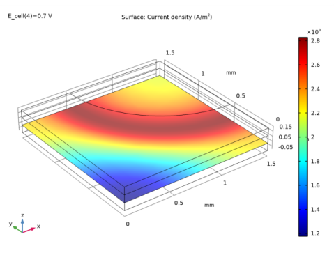 In the Settings window for Surface, click Replace Expression in the upper-right corner of the Expression section. From the menu, choose Component 1 (comp1)>Hydrogen Fuel Cell>fc.nIl - Normal electrolyte current density - A/m².