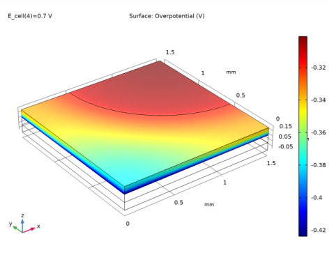 In the Settings window for Surface, click Replace Expression in the upper-right corner of the Expression section. From the menu, choose Component 1 (comp1)>Hydrogen Fuel Cell>Electrode kinetics>fc.eta_o2gder1 - Overpotential - V.