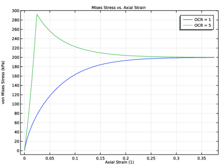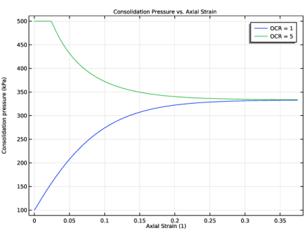 Click Replace Expression in the upper-right corner of the y-Axis Data section. From the menu, choose Component 1 (comp1)>Solid Mechanics>Soil material properties>Modified Cam-Clay>solid.epsm1.pc - Consolidation pressure - Pa.