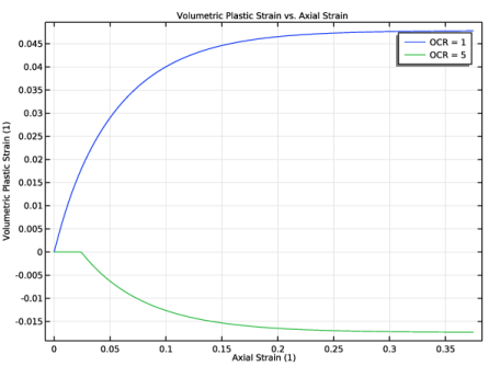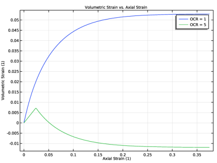 In the Settings window for 1D Plot Group, type Volumetric Strain vs. Axial Strain [Triaxial Test] in the Label text field.