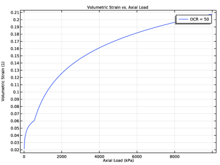 In the Settings window for 1D Plot Group, type Volumetric Strain vs. Axial Load [Oedometer Test] in the Label text field.