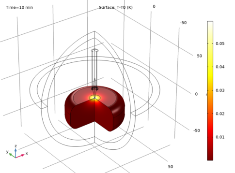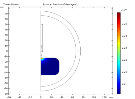 In the Settings window for Surface, click Replace Expression in the upper-right corner of the Expression section. From the menu, choose Component 1 (comp1)>Bioheat Transfer>Irreversible transformation>ht.theta_d - Fraction of damage.