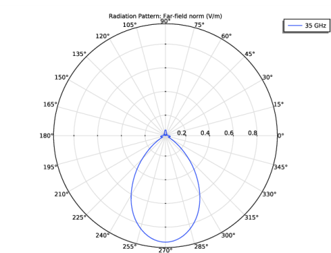 In the Model Builder window, expand the Results>2D Far Field (emw) node, then click 2D Far Field (emw).