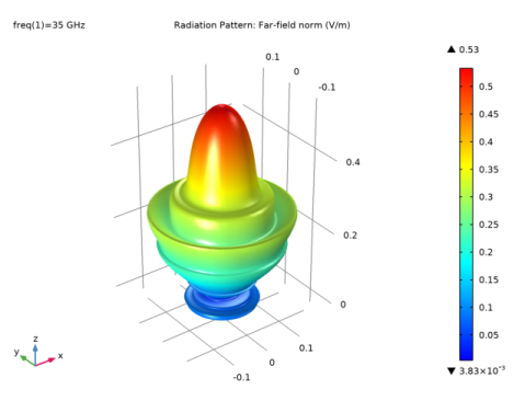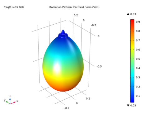In the Model Builder window, expand the Results>3D Far Field (emw) node, then click 3D Far Field (emw).