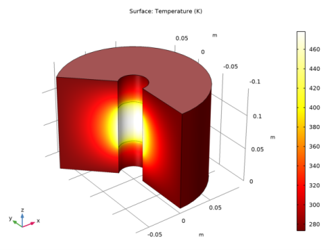 Application Library path: Heat_Transfer_Module/Tutorials,_Conduction/cylinder_conduction