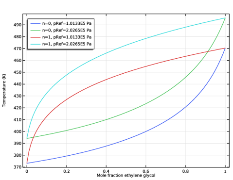 In the Model Builder window, expand the Component 1 (comp1)>Materials node, then click Liquid: ethylene glycol-water 1 (pp1mat1).