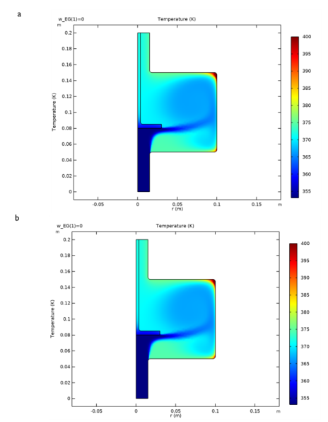 In the Model Builder window, under Results, Ctrl-click to select Velocity (spf), Pressure (spf), Temperature, 3D (ht), and Isothermal Contours (ht).