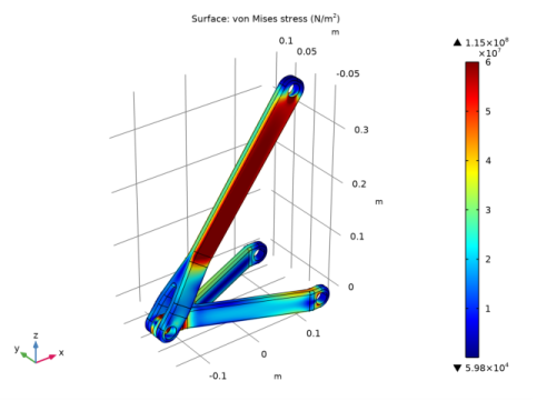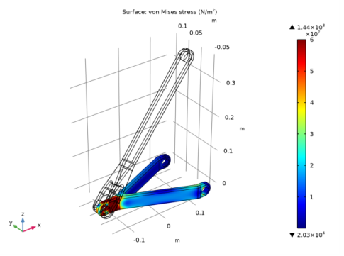 In the Settings window for Surface, click Replace Expression in the upper-right corner of the Expression section. From the menu, choose Component 1 (comp1)>Multibody Dynamics>Stress>mbd.mises - von Mises stress - N/m².
