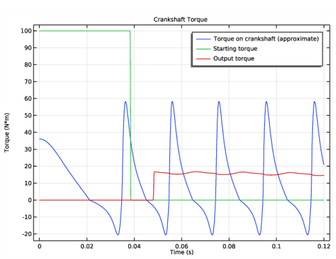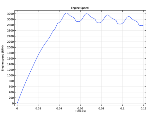 A hydrodynamic bearing can support the load only when the journal is running at a finite speed. In this model, the engine is started using an external torque on the crankshaft. Therefore, in the beginning the speed of the crankshaft is small and the bearings cannot support the load on the crankshaft from the connecting rod. A Hinge Joint with joint elasticity is used to support the crankshaft in the beginning. The elastic stiffness is slowly decreased to zero after the engine startup.