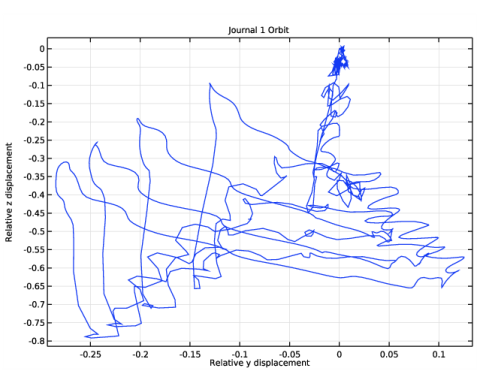 Click Add Expression in the upper-right corner of the y-Axis Data section. From the menu, choose Component 1 (comp1)>Hydrodynamic Bearing>Fluid loads>Fluid load on journal (spatial frame) - N>hdb.hjb2.Fjz - Fluid load on journal, z component.