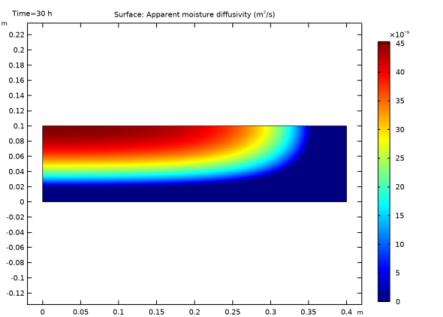 In the Settings window for 2D Plot Group, type Apparent moisture diffusivity in the Label text field.