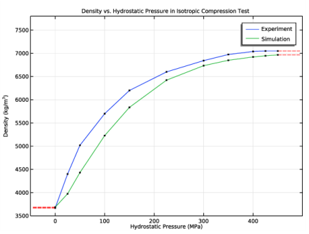 In the Model Builder window, expand the Density vs. Hydrostatic Pressure in Isotropic Compression Test node, then click Function 1.