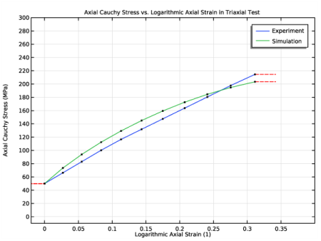 In the Model Builder window, expand the Axial Cauchy Stress vs. Logarithmic Axial Strain in Triaxial Test node, then click Function 1.