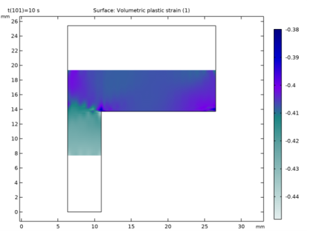 In the Settings window for Surface, click Replace Expression in the upper-right corner of the Expression section. From the menu, choose Component 1 (comp1)>Solid Mechanics>Strain>Strain invariants>solid.epvol - Volumetric plastic strain.