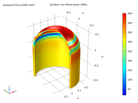 In the Model Builder window, expand the Stress, Through Thickness (shell) node, then click Through Thickness 1.