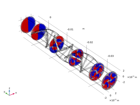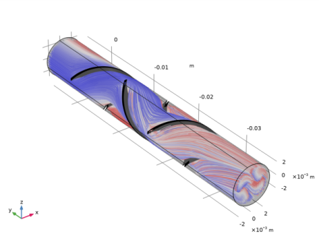 In the Model Builder window, expand the Results>Particle Trajectories (fpt) 1>Particle Trajectories 1 node, then click Particle Trajectories 1.
