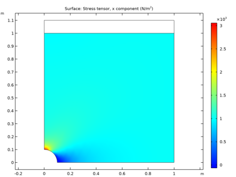In the Settings window for Surface, click Replace Expression in the upper-right corner of the Expression section. From the menu, choose Component 1 (comp1)>Solid Mechanics>Stress>Stress tensor (spatial frame) - N/m²>solid.sx - Stress tensor, x component.