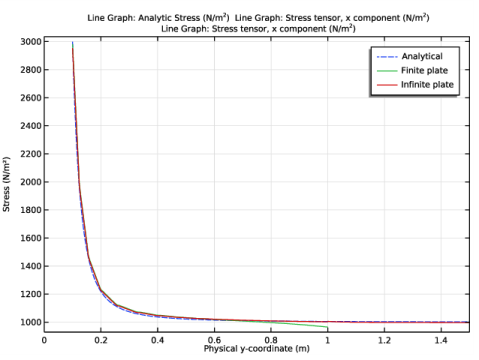 In the Settings window for Line Graph, click Replace Expression in the upper-right corner of the y-Axis Data section. From the menu, choose Component 1 (comp1)>Solid Mechanics>Stress>Stress tensor (spatial frame) - N/m²>solid.sx - Stress tensor, x component.