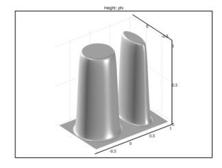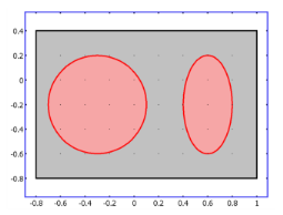Figure 5-2 shows an example where one of the domains consists of two separated parts. The interface is represented by a certain level set or isocontour of a globally defined function, the level set function