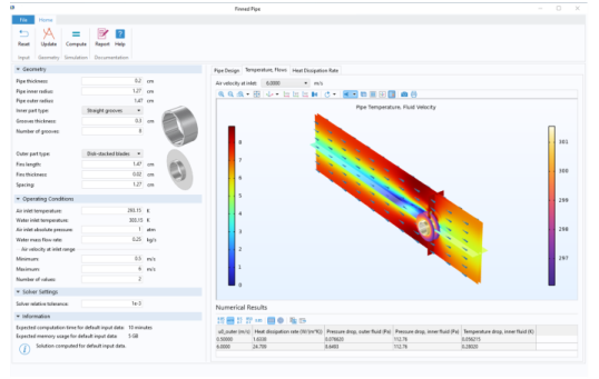 In the case of a moving fluid, the energy transported by the fluid has to be modeled in combination with fluid flow. This is referred to as convection of heat and must be accounted for in forced and free convection (conduction and advection). This module includes descriptions for heat transfer in fluids and conjugate heat transfer (heat transfer in solids and fluids in the same system), for both laminar and turbulent flows. In the case of turbulent flow, the module offers two algebraic turbulence models, the