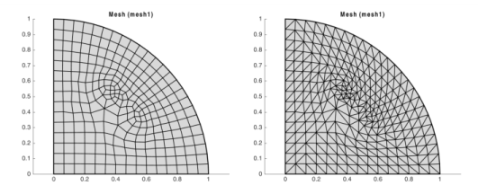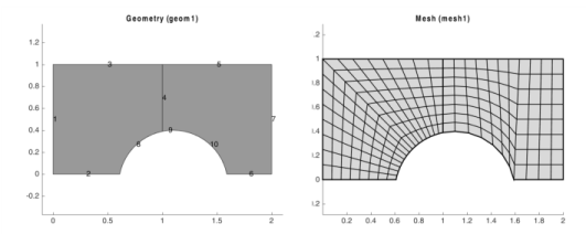 del allow you to switch to an advancing front algorithm and a Delaunay algorithm, respectively. Enter the following to create a 2D geometry, then generate a triangular mesh with the Delaunay algorithm: