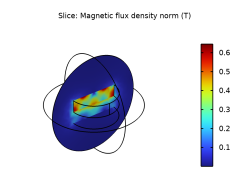 In the Settings window for Slice, click Replace Expression in the upper-right corner of the Expression section. From the menu, choose Component 1 (comp1)>Magnetic Fields, No Currents>Magnetic>mfnc.normB - Magnetic flux density norm - T.