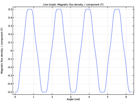 In the Settings window for Line Graph, click Replace Expression in the upper-right corner of the y-Axis Data section. From the menu, choose Component 1 (comp1)>Definitions>Vector Transform 1 (B_cyl)>Transformed vector - T>B_cyl.vr - Transformed vector, r component.