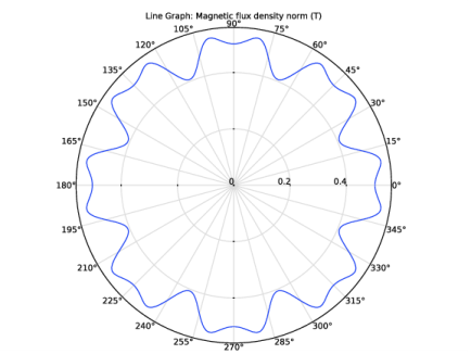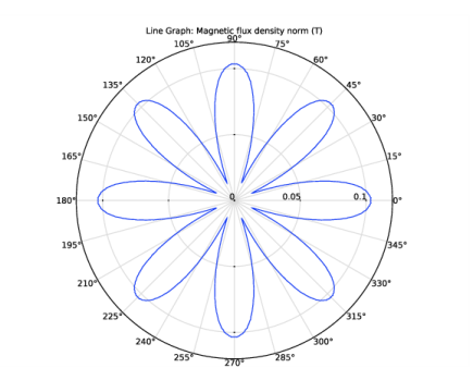 In the Settings window for Line Graph, click Replace Expression in the upper-right corner of the y-Axis Data section. From the menu, choose Component 1 (comp1)>Definitions>Vector Transform 1 (B_cyl)>Transformed vector - T>B_cyl.vphi - Transformed vector, phi component.