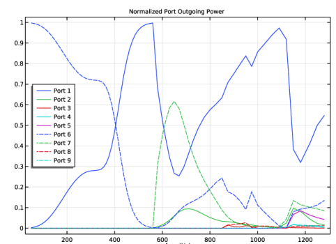 In the Settings window for 1D Plot Group, type Normalized Port Outgoing Power in the Label text field.