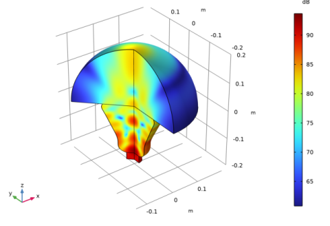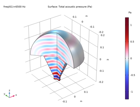 In the Model Builder window, expand the Exterior-Field Pressure (acpr) 1 node, then click Radiation Pattern 1.