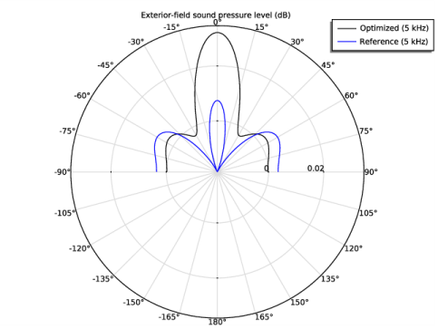 In the Model Builder window, under Results, Ctrl-click to select Acoustic Pressure (acpr) 1, Sound Pressure Level (acpr) 1, Acoustic Pressure, 3D (acpr) 1, Sound Pressure Level, 3D (acpr) 1, Exterior-Field Sound Pressure Level (acpr) 1, Exterior-Field Pressure (acpr) 1, and Shape Optimization.