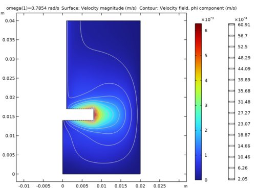 In the Model Builder window, right-click Azimuthal Velocity and choose Contour.