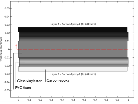In the Selection table, select the check boxes for Layer 1 - Carbon-Epoxy-1 [0], Layer 1 - PVC Foam [0], and Layer 1 - Carbon-Epoxy-2 [0].