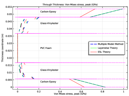 In the Model Builder window, under Results>Mises Peak Stress, Through Thickness right-click Through Thickness 1 and choose Duplicate.